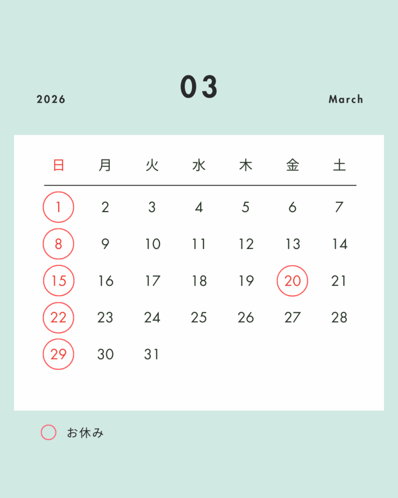 お休みの日は電話、LINE、メール等の対応は致しかねますのでご了承ください。