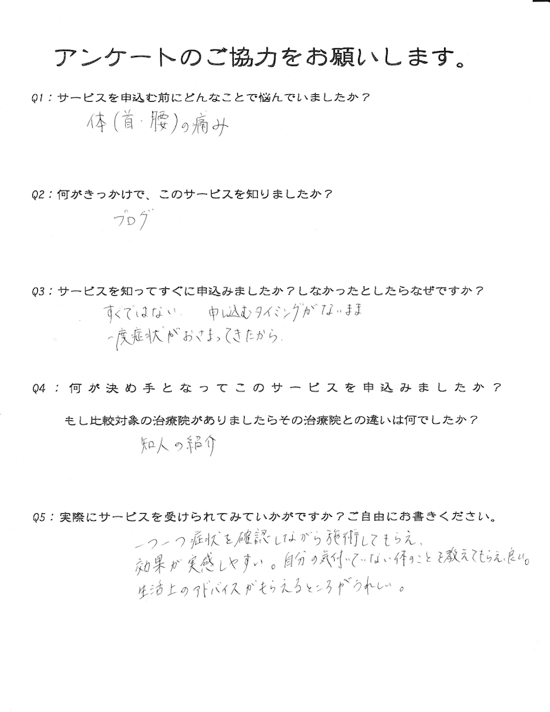 もし比較対象の治療院がありましたらその治療院との違いはなんでしたか?